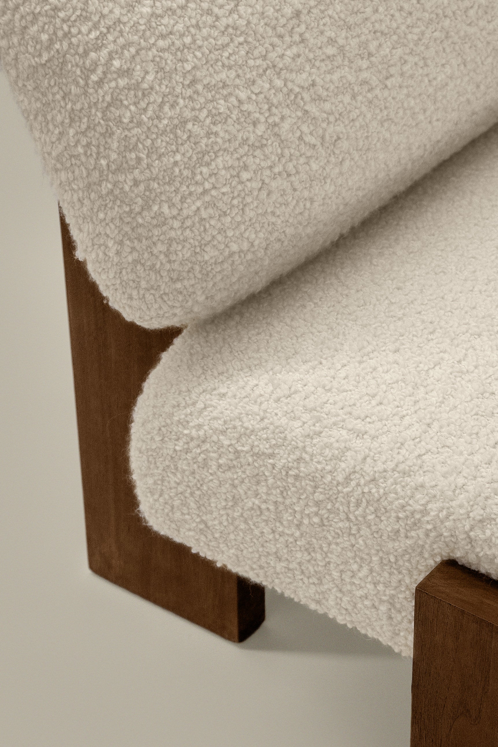 You can view this piece on display at The Edit 8840 Washington Blvd #106, Culver City, CA 90232. This chair is available in two different bouclé fabrics. Italian Bouclé a luxury fabric that comes from one of the premier textile houses in Italy (see photos 1-3) and Performance Bouclé (see photos 4-6), a fabric sourced in California that is ideal for high traffic areas due to it's easy clean-ability. It also comes in two different wood variations, our Espresso Oak, and Walnut. Please note that the Italian Bouclé reads cream and the Performance Bouclé reads a soft white. Each piece is made to order. All sales are final. For COM, samples or other wood offerings please inquire. Expedited lead time pricing upon request.