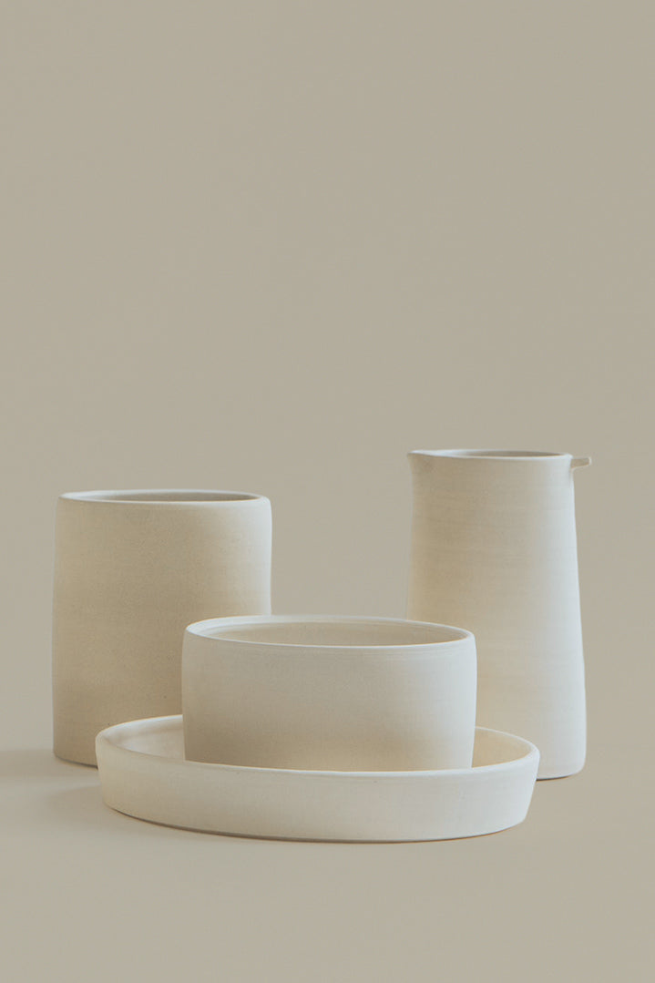 While designing this collection we were inspired by Japanese design sensibilities and specifically the word, “Shibui”. A Japanese term to describe simplicity, subtlety, and unobtrusiveness. Our hope is meals in these vessel carry more than mere consumption, but rather carry community and conversation. May these pieces encourage you to dine with others and share in the beauty of hospitality.